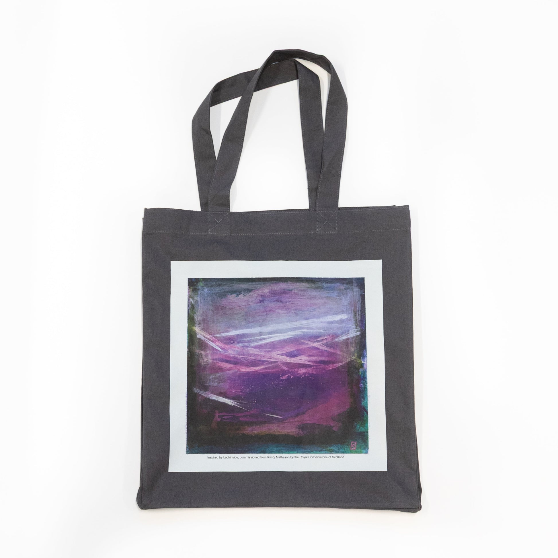 Specially commissioned from artist and musician Kirsty Matheson, this beautiful new RCS tote bag is inspired by ‘Lochinside’, the piece of music that accompanies our students’ entrance at graduation. Kirsty has synaesthesia, so she sees colours and images when she hears music, which she then strives to replicate in her art.